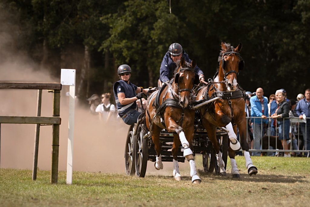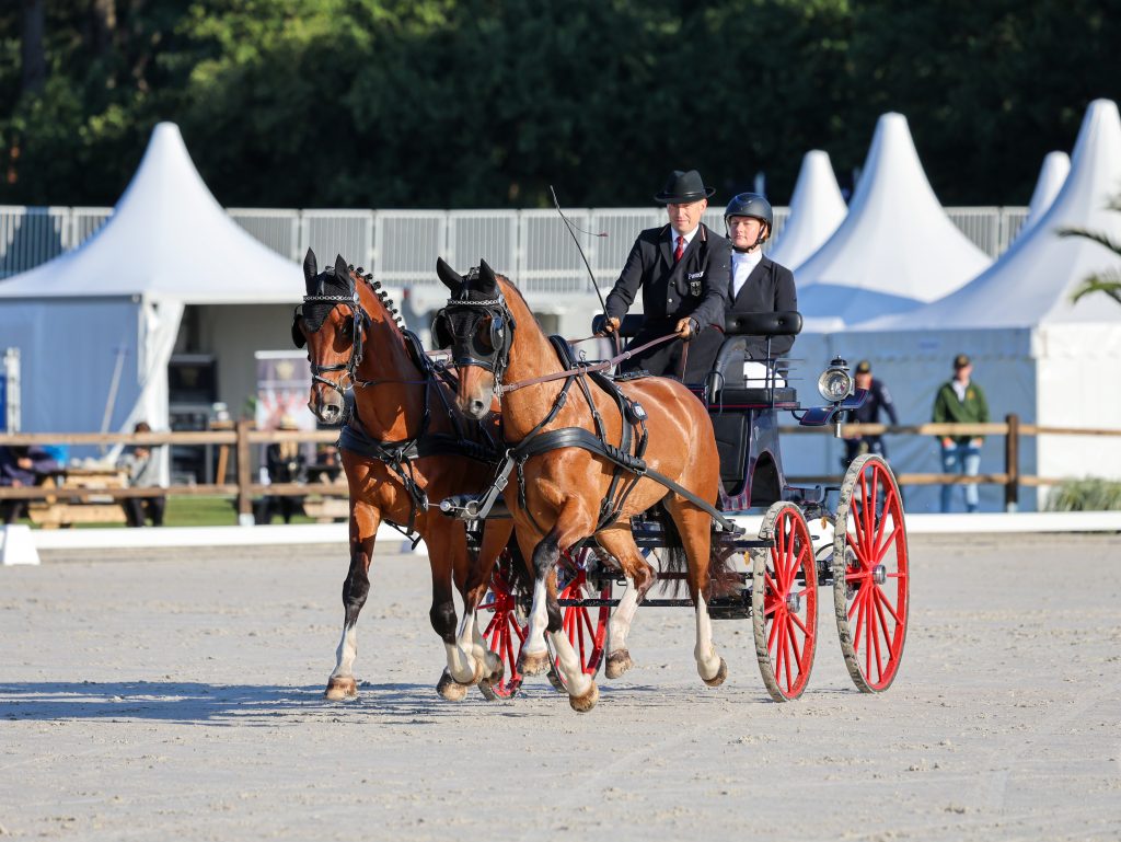 Lars Schwitte, der als Mannschaftsfahrer nominiert wurde und bereits im Jahr 2017 mit dem deutschen Team die Silbermedaille in Lipica, Slowenien, bei den Weltmeisterschaften der Zweispänner errang, fuhr mit seinem Zweispänner eine sehr ordentliche Dressur. Endstand nach Dressur für das deutsche Team war Platz fünf. Nach den starken Auftritten des deutschen Zweispänner-Teams im Gelände hatten sie sich auf den Silberkurs gebracht. Im abschließenden Kegelfahren war die Zeit knapp bemessen und der Parcours sehr technisch aufgebaut. Für das deutsche Zweispänner-Team bedeutete es am Ende in der Gesamtwertung Platz 4. In der Einzelwertung konnte Schwitte einen hervorragenden 13 Platz belegen. „Natürlich hätten wir gerne auf dem Siegertreppchen gestanden, aber es ist immer wieder ein tolles Gefühl, bei Weltmeisterschaften an den Start gehen zu können“, sagte Lars Schwitte.